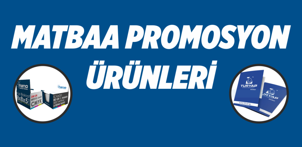 Firmamız matbaacılık sektöründe yer alan tüm gelişmeleri yakından takip edip siparişten sevkiyata kadar özveri ile çalışmaktadır. Matbaacılık alanında promosyon ürünleri hizmeti veren firmamız yüksek tirajlı işlerde ve bütün kurumsal çalışmalarda yer almaktadır. Promosyon ürünlerimiz baskılı küp bloknot, cepli dosya, duvar saati, baskılı ajanda gibi ürünlerden oluşmaktadır. Firmamız dijital baskı, ofset baskı ve serigraf baskı tekniği ile son teknolojik makineler kullanarak kaliteli hizmet vermektedir.